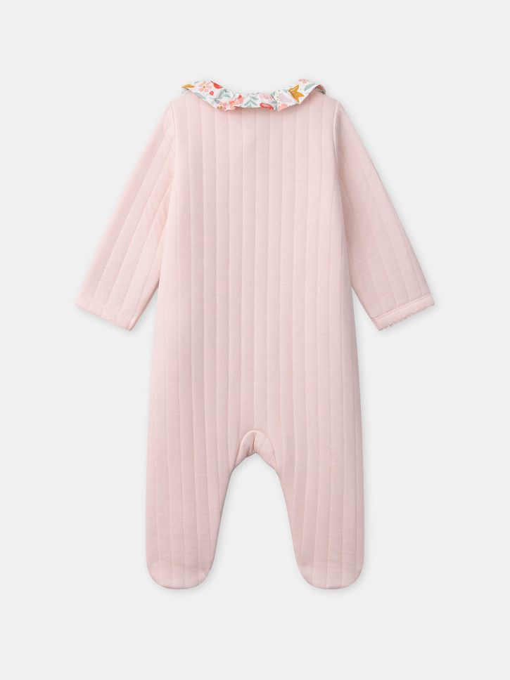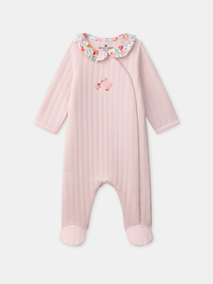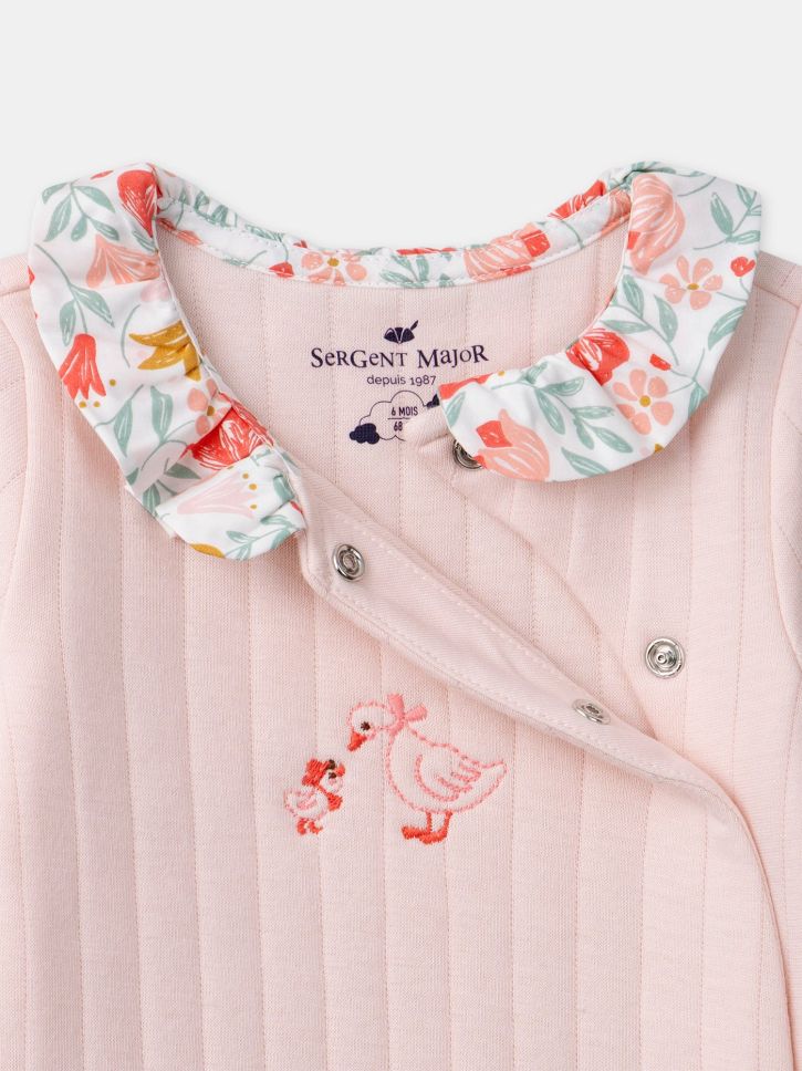 Меката материя от био памук и рециклирани влакна осигурява топлина и комфорт. Нежната бродерия с патица, флоралните детайли и фините завършеци придават поетичен стил.Бродерия с патица и патенце отпред