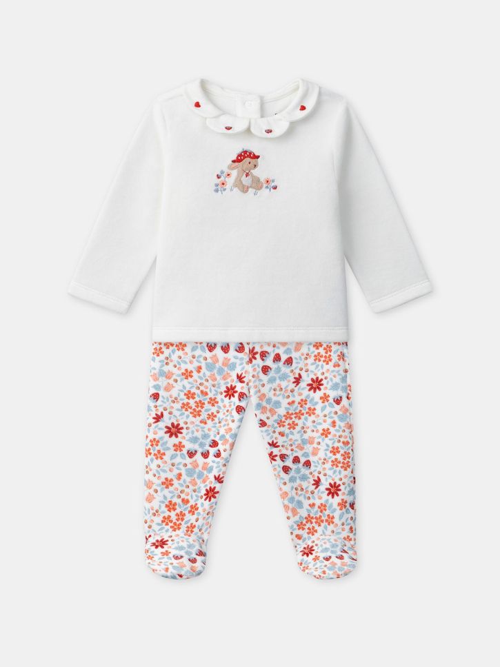 Бебешка пижама за момиче с бродерия на зайче и флорален принт