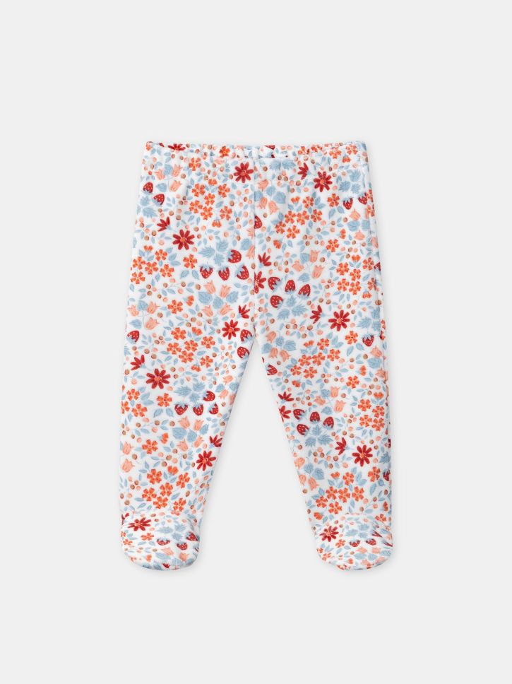 Кадифен панталон с флорален принт в нюанси на коралово, ягодово червено и синьо