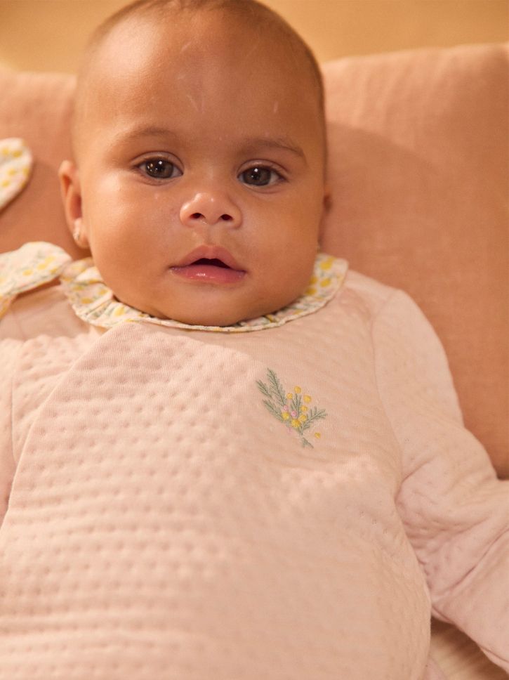 Комплект за новородено момиче: горнище и розов панталон + спален комплект