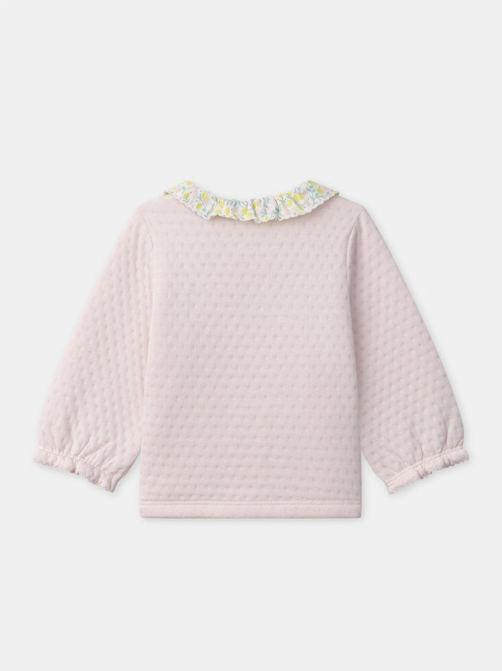 Горнище с дълъг ръкав от бледорозов плат на точки