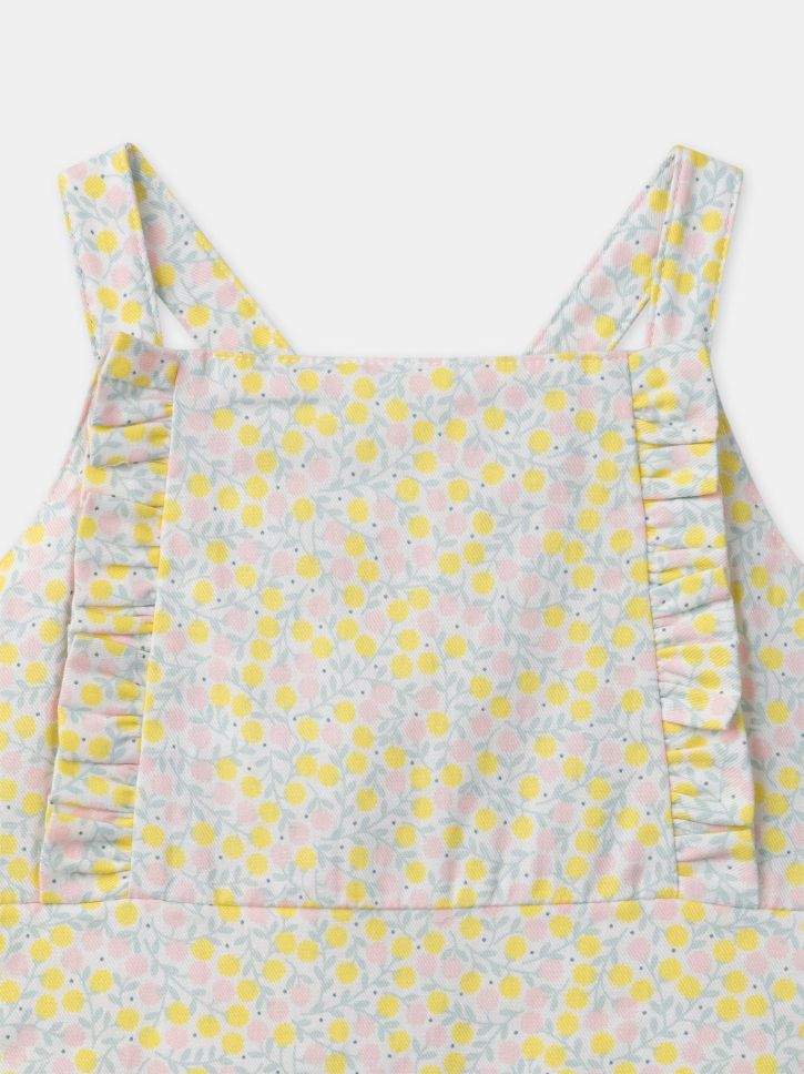 Флорален принт в нюанси на бледо розово, мимозено жълто и меко зелено върху екрю фон