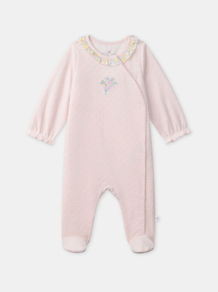 Светлорозов кадифен плат с фин точков мотив