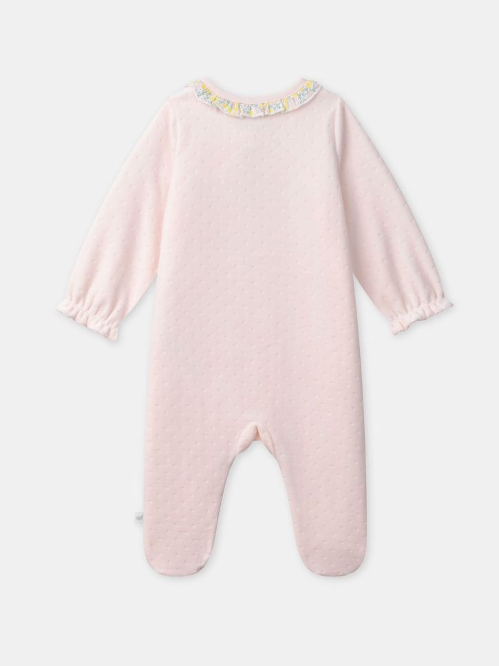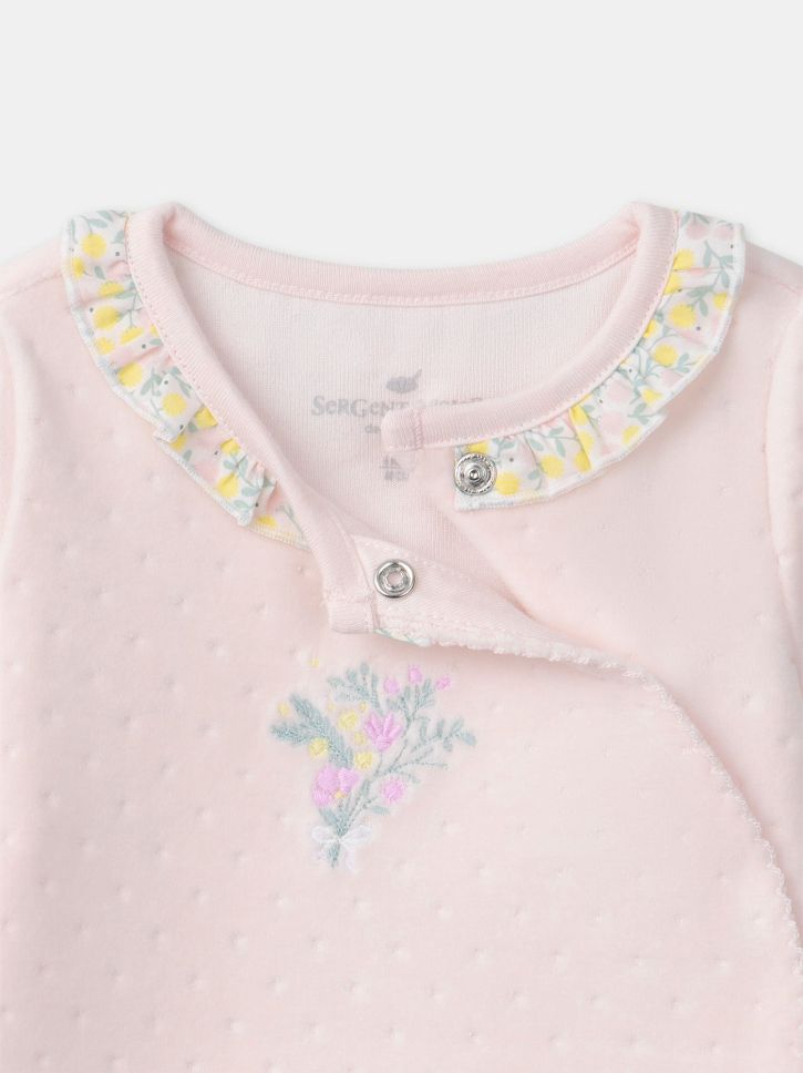РОЗОВО БОДИ С ГАЩЕРИЗОН ТИП РОМПЪР С КЪДРАВА ЯКА ЗА НОВОРОДЕНО МОМИЧЕ