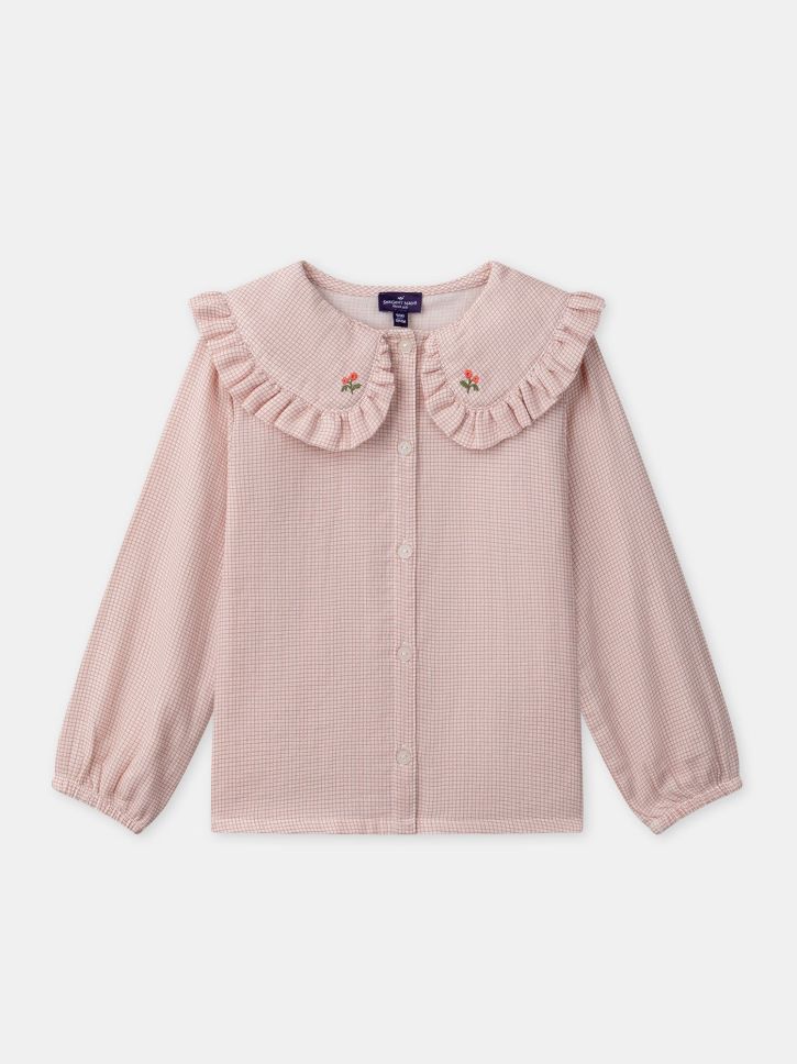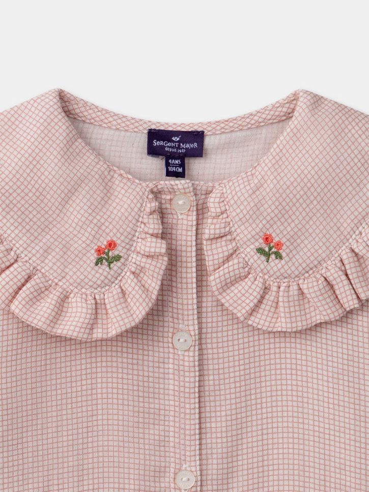 РОЗОВА БЛУЗА НА ДРЕБНО КАРЕ ЗА МОМИЧЕ