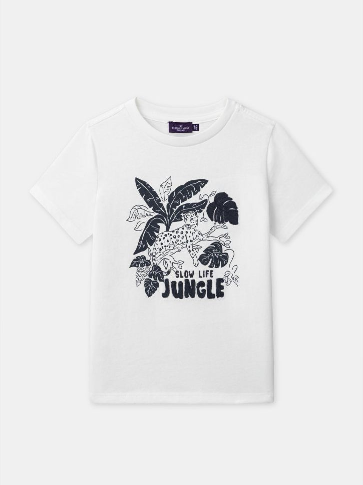 БЯЛА ТЕНИСКА С ПРИНТ ПАНТЕРА ЗА МОМЧЕ